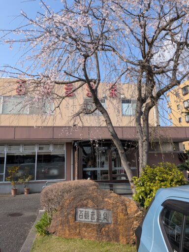温泉の玄関付近のしだれ桜も咲いてます。